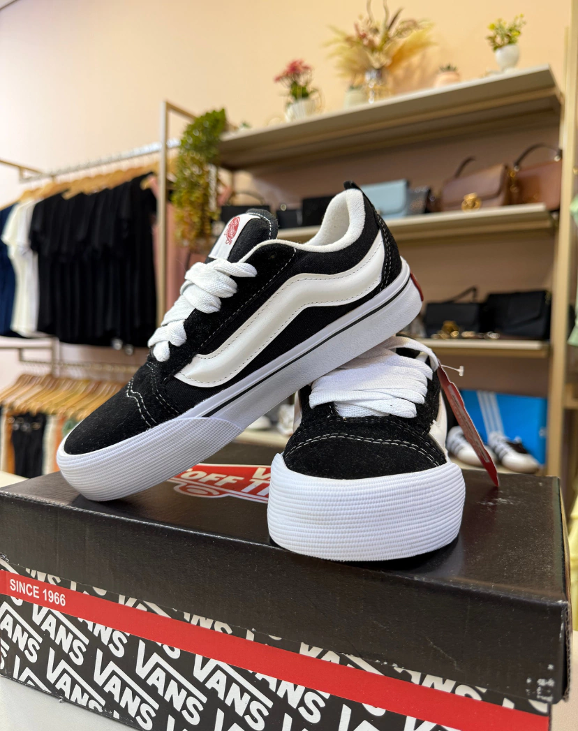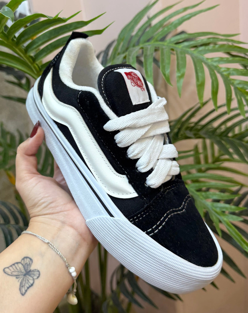 Vans Knu Skol - Preto O clássico Vans Knu Skol em preto traz estilo e conforto para o seu dia a dia. Perfeito para quem valoriza um visual despojado com qualidade.